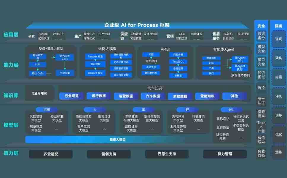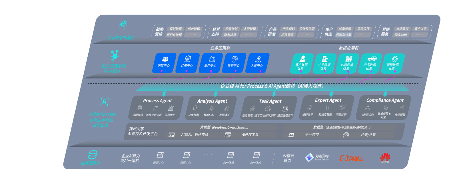 端到端的一站式AI工作空间深度融合了从企业战略规划到日常经营的全流程业务板块,,定向解决车企内部领域多、、、、部门多、、、链条长、、、场景碎片化等难题,,支持车企快速构建以AI为核心的生产力写作体系,,实现任务执行与AI能力的无缝集成与交互